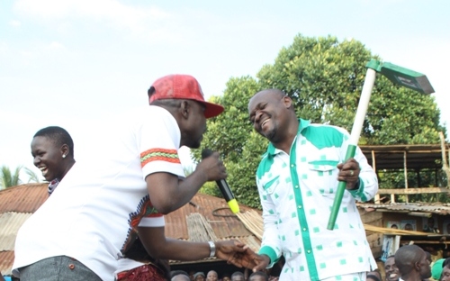 Entebbe Municipality Democratic Party MP Flag bearer Michael Kakembo Mbwatekamwa loves his party from the bottom of his heart and can do whatever it takes to promote the party everywhere. The former Barclays Bank officer is hunting for votes from everywhere in Entebbe Municipality to push him to the House of Lords ahead of the February polls. The former youth councilor is almost running himself nuts over the heated political race after his rivals including Salongo Kale Michael, FDC’s Gitta Alex and Independent candidate Abubaker Walusimbi giving him sleepless nights. On Thursday the color blind man turned up for the DP Rally dressed like a city hunter threatening to finish off all his rivals one by one.