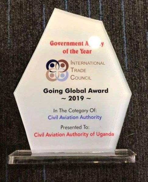 As a result of It’s tireless efforts in fostering customer care services, infrastructure improvements, training of staff and contribution towards supporting tourism and Agricultural exports facilitated through Entebbe International Airport, Uganda Civil Aviation Authority (UCAA) has yet again been recognized by the International Trade Council (ITC) with the ‘Going Global’ award (2019) as the government agency of the year in the Aviation category.