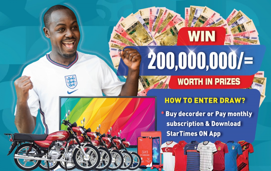 Euro 2020 fans who haven’t joined StarTimes, simply buy our decoders at 39,000/- and 99,000/- for antenna and dish respectively or download the StarTimes ON app to watch the Euro 2020 Live and in HD with local commentary. Prizes in our weekly draws include: UGX 10m, Bodaboda, LED TVs, headsets etc. The next draw will be on 26th June 2021 at 9pm on Sanyuka TV.