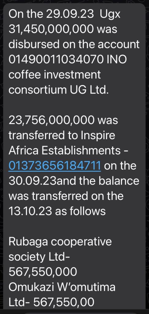 Folks, following my last post, I have since received an update on what happened to the rest of the money. Find here below how the 31.4bn meant for the coffee value chain was shared out by the crooks at @coffeeinvestug. Read it from frame 1-4 on that… pic.twitter.com/mh3UfykyW3— Robert Kabushenga (@rkabushenga) January 19, 2024