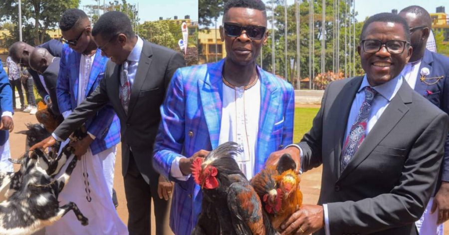 In addition, Chameleone rewarded the Katikiro with a Buganda certificate, two cocks, and two goats for his excellent service to his people.