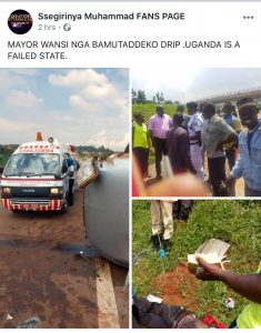 Accident. Along death Entebbe Expressway in Kayanja Mayor Nasty Survives