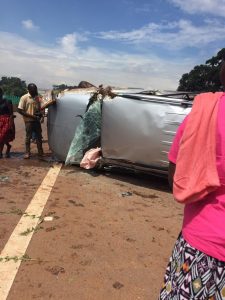 According to different sources, the accident occurred between Midday and 1pm as they were approaching Busega along the Entebbe Expressway after the car tyre burst and the vehicle reportedly overturned and got smashed.