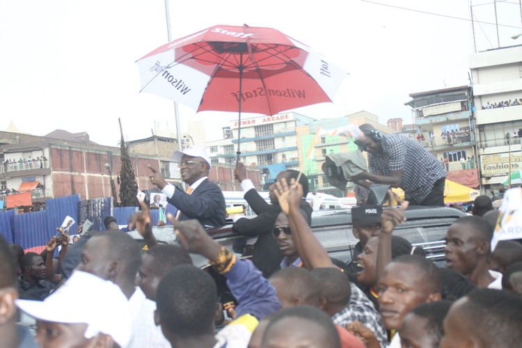 Mbabazi arrives at Nakivubo stadium after he was nominated by the EC Last year.