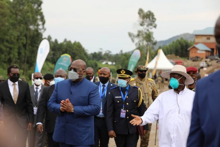President Yoweri Museveni and his DRC counterpart, Felix Tshisekedi on Wednesday held the groundbreaking ceremony for the construction of road networks connecting the two countries.