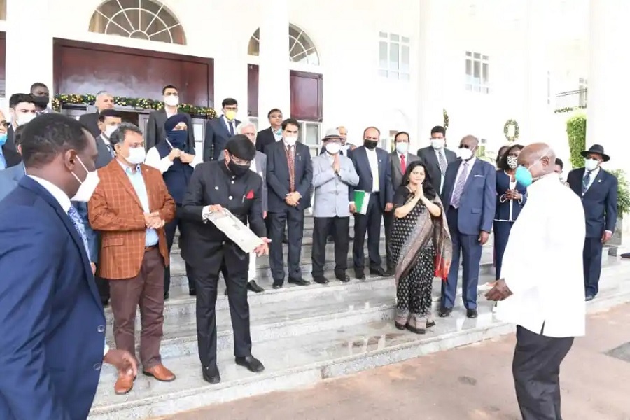 The President was today holding a meeting with the delegation led by the Chairman of Indian Association in Uganda Mr Ashok Kumar Agarwal at State House Entebbe.