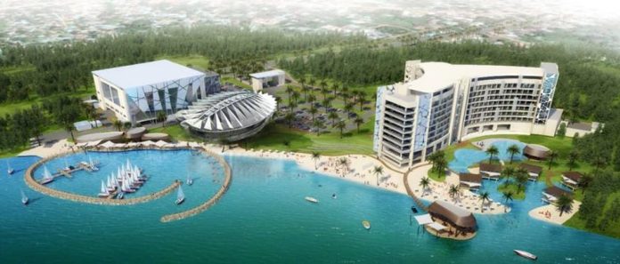 It will be a 350 room resort and convention centre, with 4 restaurants, marina for 50 boats, 10 presidential suites, Convention Centre with carrying capacity of 3500 persons, additional conference facilities of upto 1500 persons, small conference and meeting facilities, 3 wedding grounds and parking space for 1500 cars.